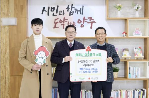 [한국제일신문, 임하종기자] 양주시는 지난 3일 관내 신성통상㈜ 리치마트가 설 명절을 맞아 양주시에 백미 300포(약 1,100만 원 상당)를 기부했다고 밝혔다.