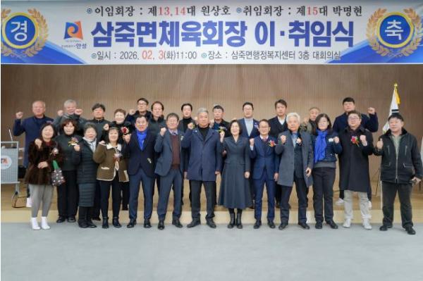 [한국제일신문, 김성옥기자] 안성시 삼죽면은 지난 2월 3일, 삼죽행정복지센터 3층 대회의실에서 열린 삼죽면 체육회장 이·취임식을 성황리에 마쳤다고 밝혔다.