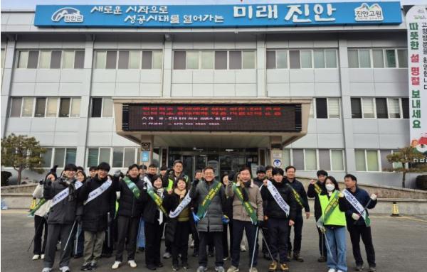 [한국제일신문, 김성관기자] 진안군은 설 명절을 앞두고 4일, 군청 환경과와 진안읍 행정복지센터 직원 60여 명이 참여한 가운데 진안읍 시가지 일원에서 환경정화활동과 생활쓰레기 저녁시간 배출 캠페인을 추진했다.