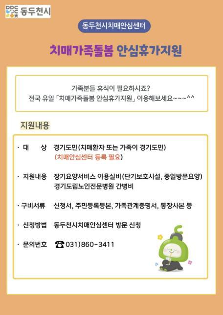 동두천시치매안심센터, '치매가족돌봄 안심휴가 지원사업' 안내