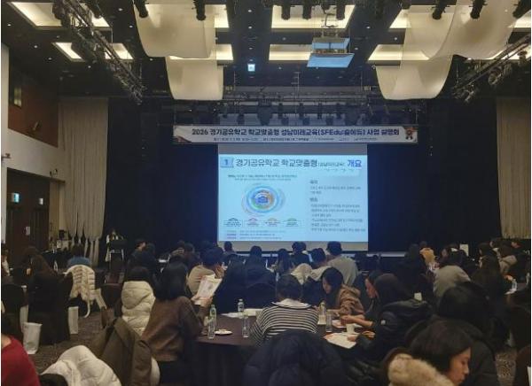 [한국제일신문, 김성옥기자] 경기도성남교육지원청은 5일 밀리토피아호텔에서 관내 초·중·고·특수학교 교원 및 지자체 관계자 등 300여 명이 참석한 가운데 ‘2026 경기공유학교 학교맞춤형 성남미래교육(숲에듀) 사업설명회’를 개최했다.
