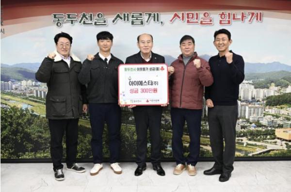 [한국제일신문, 김성옥기자] 동두천시 어울림센터 시민수영장을 민간위탁 운영 중인 아이에스티(주)(대표 최한근)는 지난 4일 동두천시청 시장실에서 기부금 전달식을 진행했다.