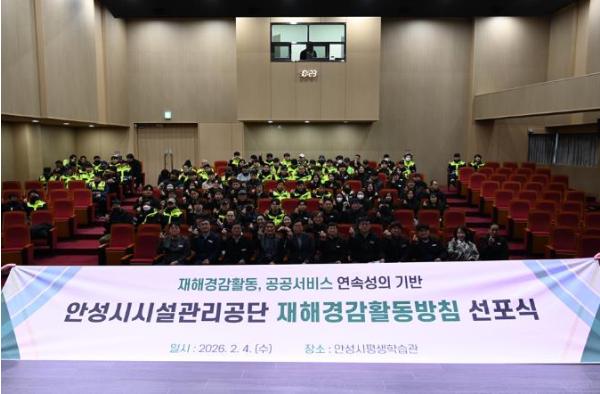 이날 선포식에는 부서장 및 전 직원이 참석해 재해경감활동 방침의 주요 내용과 추진 방향을 공유하고, 재난 및 사고 발생 시에도 공공서비스가 안정적으로 유지될 수 있도록 각자의 역할과 책임을 재확인하는 시간을 가졌다.