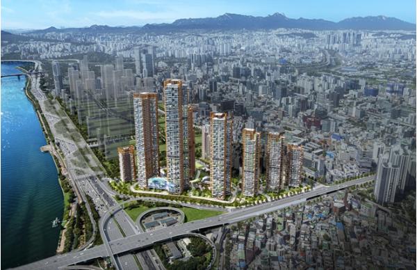 단지는 한강변으로 10~40m 규모의 통경축을 확보한 열린 배치로 개방적 경관을 형성한다. 성수역에서 한강까지 이어지는 선형공원을 조성해 문화와 자연이 어우러지는 주거환경을 만든다.