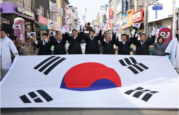 참가자들은 중앙사거리에서 뱃들공원까지 행진하며 3·1운동의 역사적 의미를 되새겼고, 태극기가 일제히 펄럭이는 장면은 현장을 찾은 군민들에게 깊은 울림을 전했다. 거리에는 응원과 박수가 이어지며 세대를 아우르는 공감의 장이 마련됐다.