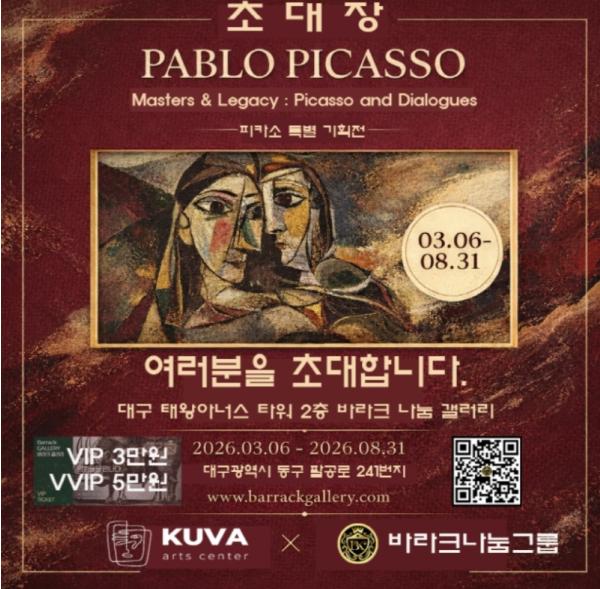 [한국제일신문, 김성옥기자] 한 도시의 전시장이 한 시대의 미술사를 온전히 담아내는 일은 결코 가벼운 과제가 아니다. 2026년 3월 6일부터 8월 31일까지 대구 동구 봉무동 바라크나눔갤러리에서 열리는 피카소 인 대구 피카소와 전설의 거장들 특별전은 이러한 학술적 무게를 정면으로 다루며 지역 문화계에 새로운 이정표를 제시한다. 이번 전시는 단순히 세계적 명화를 나열하여 선보이는 단발성 행사를 넘어 20세기 미술이 형성해온 사유의 구조를 하나의 정교한 큐레이토리얼 맥락 안에서 재구성하려는 기획이다.