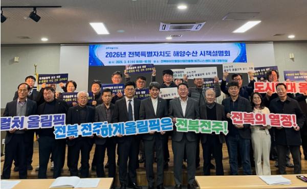 [한국제일신문, 윤진성기자] 전북특별자치도는 4일 전북바이오융합산업진흥원에서 ‘2026 해양수산 시책설명회’를 열고 올해 해양수산 정책 방향과 주요 추진 과제를 공유했다.
