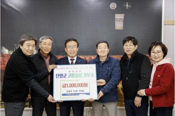 단양군은 단양초등학교 61회 동문 4명이 고향사랑기부제에 동참해 단양군에 100만 원을 기부했다고 4일 밝혔다.