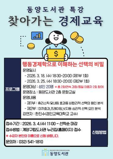 계양구 동양도서관, ‘찾아가는 경제교육 특강’ 참여자 모집