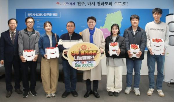 전주시딸기연구회(회장 김동민) 임원 및 회원 6명은 5일 전주시청을 방문해 1인 가구 등 위기가구 발굴 지원을 위한 ‘전주 함께라면’ 추진을 위한 성금 300만 원을 기탁했다.