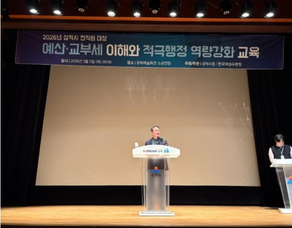 [한국제일신문, 김성옥기자] 삼척시는 3월 5일 문화예술회관 소공연장에서 전 직원을 대상으로 ‘예산·교부세 이해와 적극행정 역량강화 교육’을 실시했다.