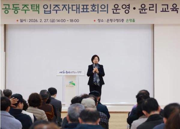 [한국제일신문, 김성옥기자] 서울 은평구는 지난달 27일 공동주택 입주자대표회의 동별 대표자를 대상으로 ‘2026 공동주택 입주자대표회의 운영·윤리교육’을 실시했다고 밝혔다.