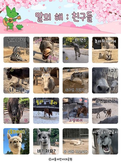우선 공단은 3월 6일 오후 2시부터 서울어린이대공원 카카오톡 채널을 구독하는 선착순 2만 5천 명에게 ‘말과 친구들’ 이모티콘 16종을 무료로 증정한다.