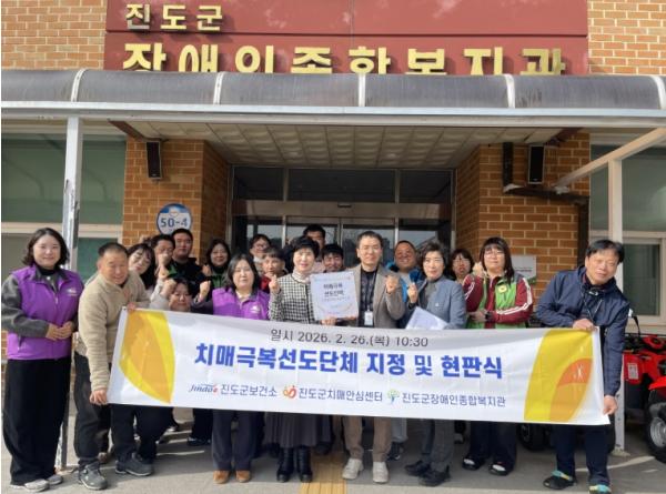 [한국제일신문, 윤진성기자] 진도군 보건소(치매안심센터)는 치매파트너를 양성하고 지역자원을 연계하기 위해 지난 2월 26일, 진도군장애인종합복지관을 치매극복선도단체로 신규 지정하고 복지관에서 현판식을 진행했다.
