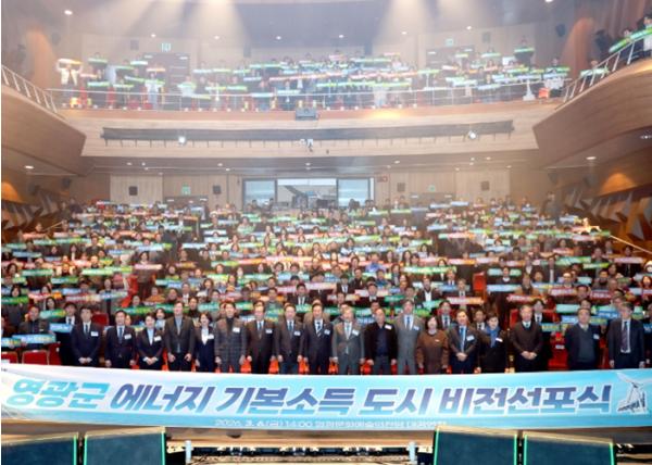 [한국제일신문, 윤진성기자] 영광군은 지난 3월 6일 오후 2시, 영광문화예술의전당 대공연장에서 '영광군 에너지 기본소득 도시 비전선포식'을 성황리에 개최했다.