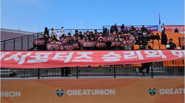 [한국제일신문, 김성옥기자] 축구 도시 강릉의 전통을 이어온 시민구단 FC강릉의 홈 개막전을 맞아 지역 응원단 ‘강남제비 서포터즈’가 선수단을 향한 열띤 응원을 펼쳤다.
