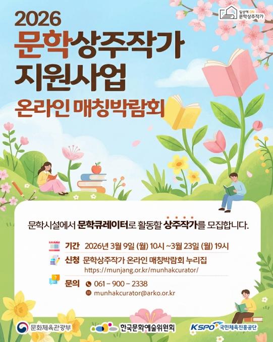 [한국제일신문, 김성옥기자] 문화체육관광부는 한국문화예술위원회와 함께 ‘2026년 문학상주작가 지원사업’에 참여할 작가를 3월 9일부터 23일까지 공모한다.