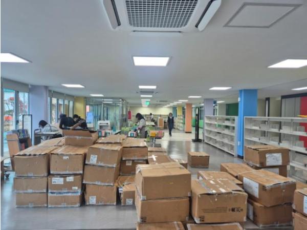 이번 지원은 그린스마트미래학교 조성 공사 기간 동안 박스에 포장되어 있던 도서를 서가에 정리하고 정배열하는 작업을 지원함으로써 교원의 업무 부담을 줄이고 도서실 환경을 개선하기 위해 마련됐다.