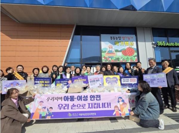 완주군 아동·여성안전지역연대는 최근 봉동생강골시장 일원에서 여성폭력 및 아동학대 예방 캠페인을 진행하며 군민들과 직접 소통하는 시간을 가졌다.