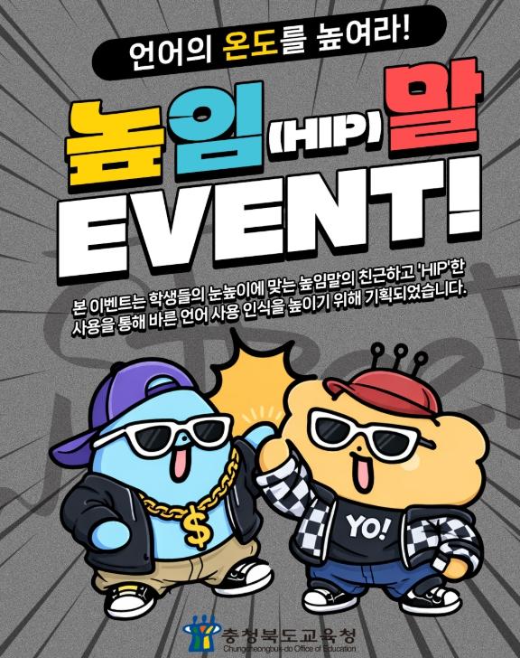 [한국제일신문, 김성옥기자] 충청북도교육청은 학생들의 올바른 언어 사용과 존중 문화를 확산하기 위해 18일까지 충북교육청 인스타그램에서 '언어의 온도를 높여라! 높임말 이벤트'를 운영한다고 밝혔다.