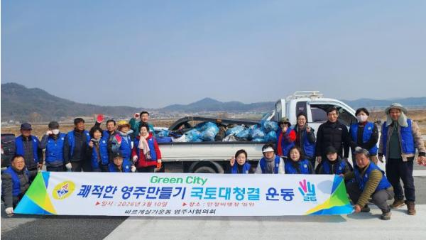 이날 국토대청결운동에는 바르게살기운동영주시협의회원 30여 명이 참여해 안정면 비행장 주변 일대에 무단 투기된 생활폐기물과 각종 쓰레기를 수거하며 환경정화 활동을 펼쳤다.