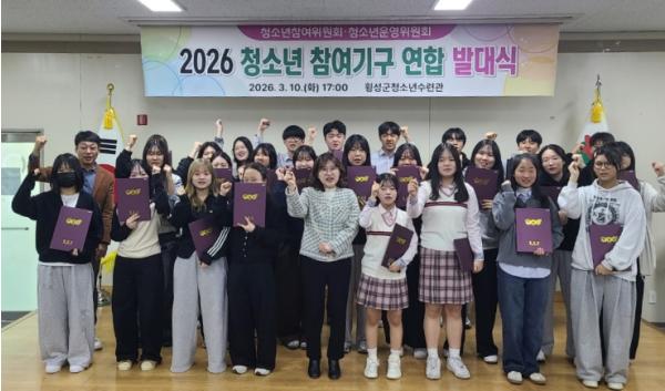 [한국제일신문, 김성광기자] 횡성군은 10일 오후 청소년수련관에서 지역 청소년들의 주체적인 참여권 보장과 정책 반영을 위한 ‘2026년 횡성군 청소년참여기구 연합 발대식’을 개최했다고 밝혔다.