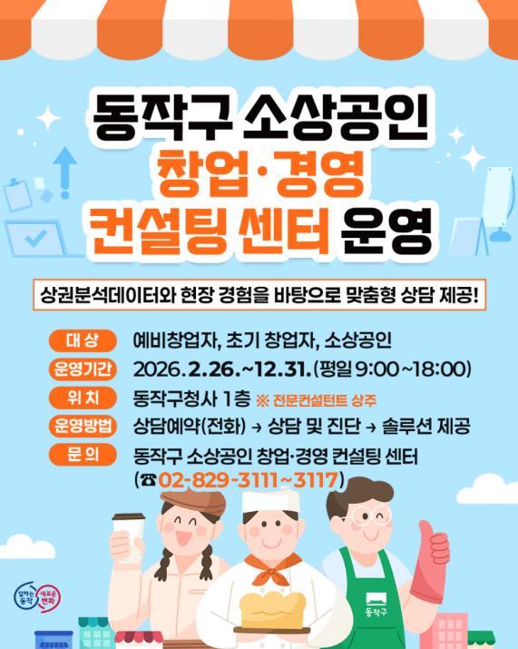 [한국제일신문, 김성옥기자] 동작구가 지난 3일부터 전국 기초지자체 최초로 관내 소상공인을 위한 창업·경영 컨설팅 센터를 직영 운영한다고 밝혔다.