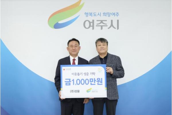 ㈜성용, 여주시에 이웃돕기 성금 1,000만원 기탁