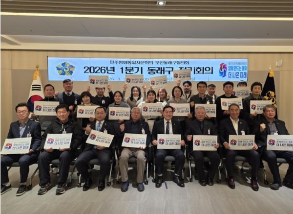 [한국제일신문, 김성옥기자] 부산 동래구는 지난 9일 동래구청 다목적실에서 민주평화통일자문회의 부산동래구협의회(협의회장 추한권)가 장준용 구청장, 탁영일 구의장, 자문위원 등 33명이 참석한 가운데 ‘한반도 평화공존을 위한 대내외 정책 추진 방향’을 주제로‘2026년 1분기 정기회의’를 개최했다고 밝혔다.