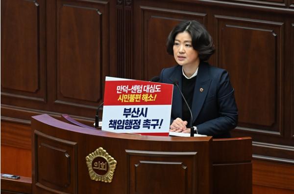 [한국제일신문, 김성옥기자] 부산광역시의회 행정문화위원회 김효정 의원(북구 만덕·덕천)은 11일 열린 제334회 임시회 본회의에서 5분 자유발언을 통해, 지난 2월 10일 개통한 만덕~센텀 도시고속화도로(대심도)로 인해 발생한 극심한 교통 정체와 주민 불편을 해결하기 위한 부산시의 책임 행정을 강력히 촉구했다.