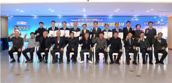 협약식에서는 ‘본량동 영농형 태양광 민관협의회’와 국회, 농림축산식품부, 기후에너지환경부 등 관계기관이 사업 추진을 위한 협력 합의문에 서명했다.
