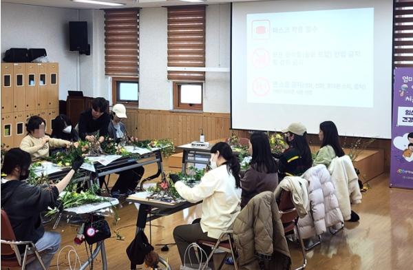 이번 프로그램은 임신 기간 중 정서적 안정을 돕고 태교 활동을 지원하기 위해 봄꽃을 활용한 꽃꽂이 교실이 진행되어 참가자들의 큰 호응을 얻었다.