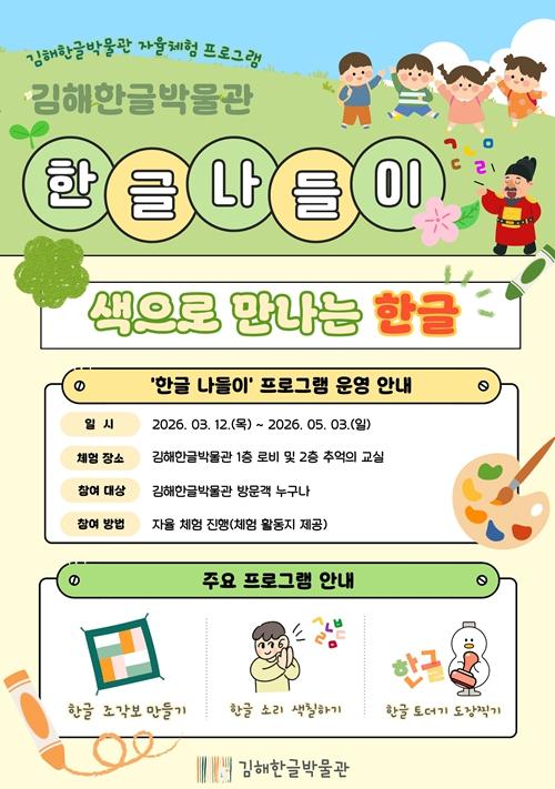 [한국제일신문, 김성옥기자] 김해한글박물관은 새 학기를 맞아 시민 자율 참여형 교육·체험 프로그램 ‘한글 나들이’를 운영한다고 12일 밝혔다.