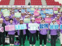 이번 행사는 경기도체육대회 운영을 지원할 자원봉사자 500여 명이 참석한 가운데 진행됐으며 발대식 종료 후 참석자들은 ‘더 빠른 내일! JTX 함께 응원해요’ 등의 문구가 적힌 팻말을 들고 중부권 광역급행철도 조기 착공을 응원하는 퍼포먼스를 함께 펼쳤다.
