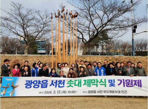 이번 행사는 광양읍의 상징물이 될 솟대 설치를 기념하고 주민 화합과 지역 공동체의 결속을 다지기 위해 마련됐으며, 주민과 지역 기관·사회단체 관계자, 내빈 등이 참석했다.