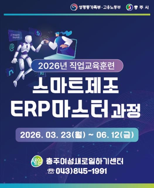 한편, 충주여성새로일하기센터는 2026년 ▲스마트제조 ERP마스터 과정을 포함해 ▲끝장실전사회복지행정실무 과정 ▲시니어맞춤돌봄스킬업 과정 등 총 3개의 직업교육훈련 과정을 운영할 계획이다.