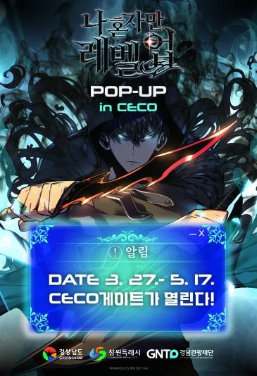 [한국제일신문, 김성옥기자] 창원특례시는 경상남도, 경상남도관광재단과 함께 3월 27일부터 5월 17일까지 창원컨벤션센터(CECO) 1층 상설전시장에서 '나 혼자만 레벨업 POP-UP in CECO' 행사를 개최한다고 밝혔다.