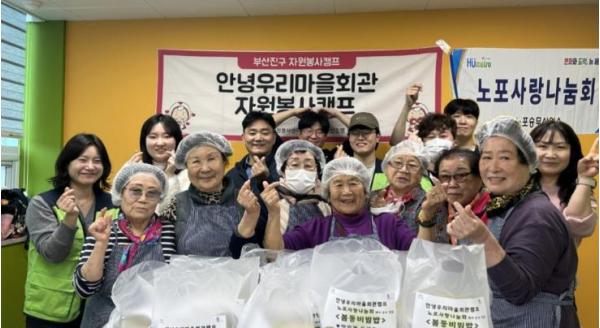 전포2동 어르신들로 구성된 안녕우리마을회관 자원봉사캠프는 10명의 캠프지기가 홀로 어르신들의 고독사 예방을 위해 반찬을 만들어 전달하고, 탄소중립을 실천하는 등 다양한 봉사활동을 진행하고 있다.