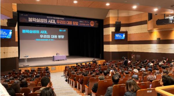 이번 강연은 “불확실성의 시대, 우리의 대응방향”이라는 주제로 진행됐으며, 급변하는 국제 정세와 기후 변화, 신기술 발전 등 다양한 글로벌 이슈 속에서 대한민국과 지역사회가 나아가야 할 방향을 모색하는 뜻깊은 자리였다.