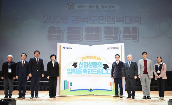 [한국제일신문, 김성옥기자] 경상북도는 3월 20일 도청 동락관에서 ‘경북도민행복대학 합동입학식’을 개최했다. 이번 행사에는 도내 20개 시군 및 대학의 학‧석‧박사 과정 입학생과 관계자 등 약 500명이 참석했다.