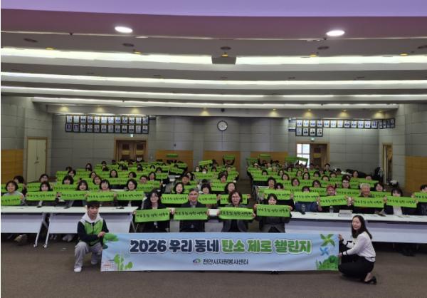 [한국제일신문, 김성옥기자] 천안시는 지난 21일 시청 대회의실에서 천안시자원봉사센터가 시민 참여형 탄소중립 실천 운동인 ‘2026 우리동네 탄소 제로 챌린지’ 발대식을 개최했다고 밝혔다.