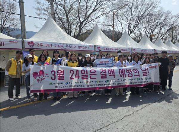 [한국제일신문, 김성옥기자] 대구광역시는 제16회 결핵예방의 날(3월 24일)및 결핵예방주간을 맞아 3월 24일 오후 2시, 두류공원 문화예술회관 정문 일대에서 결핵예방 합동 캠페인을 실시한다.