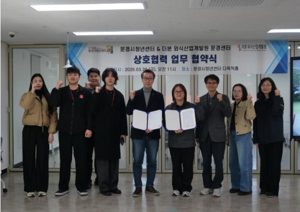 [한국제일신문, 김성옥기자] 문경시청년센터는 2026년 3월 20일 오전 11시, 더본 외식산업개발원 문경센터와 지역 청년의 외식 산업 활성화 및 프로그램 공동 개발 운영 등을 위한 업무협약(MOU)을 체결했다고 밝혔다.