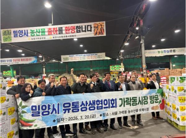[한국제일신문, 김성옥기자] 밀양시 농산물 유통상생협의회는 지난 20일 서울 가락농수산물종합도매시장을 방문해 지역 농산물 유통 경쟁력 강화를 위한 현장 활동을 펼쳤다.