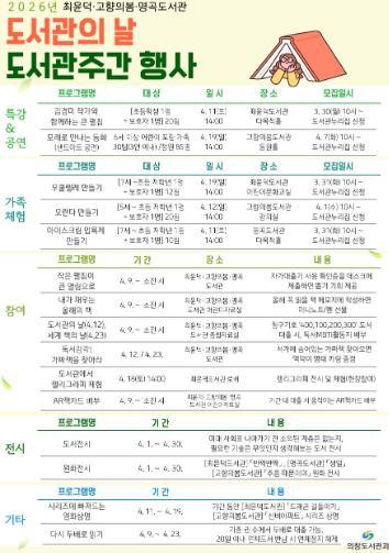의창도서관과 김외화 과장은 “2026년 도서관의 날과 도서관주간을 맞아 시민들이 책과 더 가까워지고, 도서관이 즐겁고 유익한 문화 공간으로 자리잡는 기회가 되기를 바란다.”고 말했다.
