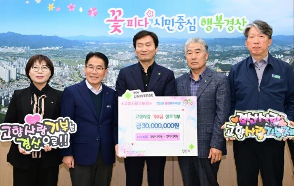 이재근 NH농협 경산시지부장은 “이번 상호 기부는 두 지역이 함께 지역발전을 응원하는 뜻깊은 실천”이며 “앞으로도 고향사랑기부제 활성화와 나눔 확산에 지속적으로 힘을 보태겠다”고 말했다.