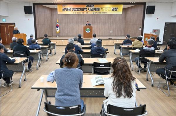 매년 운영되는 농업인대학은 군위군의 미래를 이끌어 갈 핵심인재 양성을 목표로 추진하고 있다. 기후변화 대응을 위한 군위 맞춤형 사과 신품종 골든볼 생산단지 조성을 위하여 3년간 골든볼 과정을 개설하며 농업인들의 호응에 발 빠르게 대응하여 한층 더 주목받고 있다.