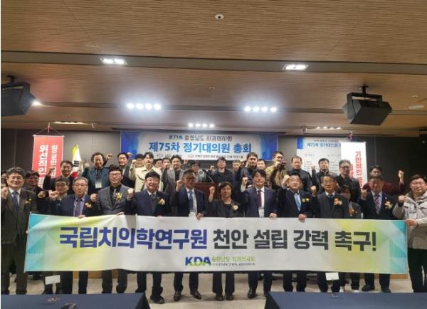천안시는 지난 25일 천안 라마다호텔에서 열린 제75회 충남치과의사회 정기총회에서 국립치의학연구원 천안 설립을 촉구하는 결의대회가 열렸다고 밝혔다.