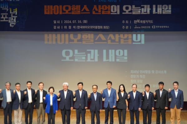 전북연구원(원장 이남호)은 16일 오전 8시 전북특별자치도청 대공연장에서 ‘바이오헬스 산업의 오늘과 내일’을 주제로 제6회 ‘백년포럼’을 개최했다.