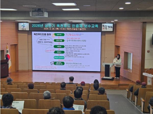 이번 교육은 '옥천푸드 육성 및 지원에 관한 조례'에 따라 연 2회(상·하반기) 운영되는 정기 보수교육으로, 인증 갱신 대상자는 다음 갱신 시까지 의무적으로 이수해야 한다. 이에 따라 군은 옥천푸드 인증기간 만료 예정자 125명을 대상으로 교육 안내 문자메시지를 일괄 발송했다.
